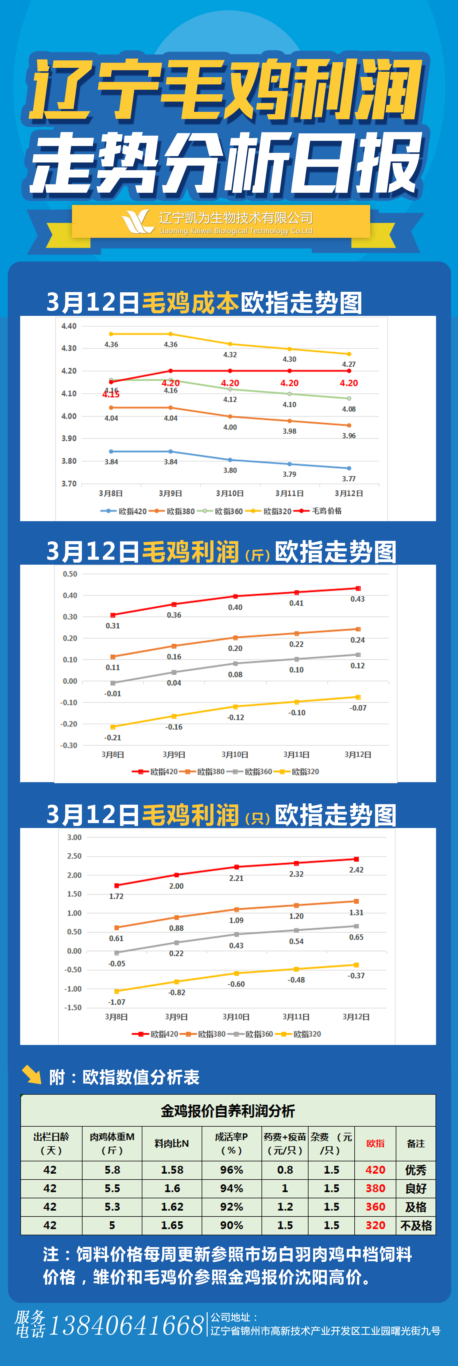 3月12日遼寧地區(qū)毛雞利潤走勢分析圖