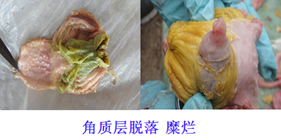 谷鳳柱教授還說,肌胃炎多和腺胃炎同時發(fā)生,但也可單獨發(fā)生,且對雞的危害大于腺胃炎。由于病因不同,臨床肌胃角質(zhì)層的病理變化也不盡相同。臨床上經(jīng)常看到肌胃角質(zhì)層的糜爛、崩解一定是發(fā)生了肌胃炎,但角質(zhì)層沒有糜爛不一定不是肌胃炎,要認真辯證分析。如果發(fā)現(xiàn)角質(zhì)層已經(jīng)發(fā)生褪色、變淡,那么我們就應(yīng)該注意了。
