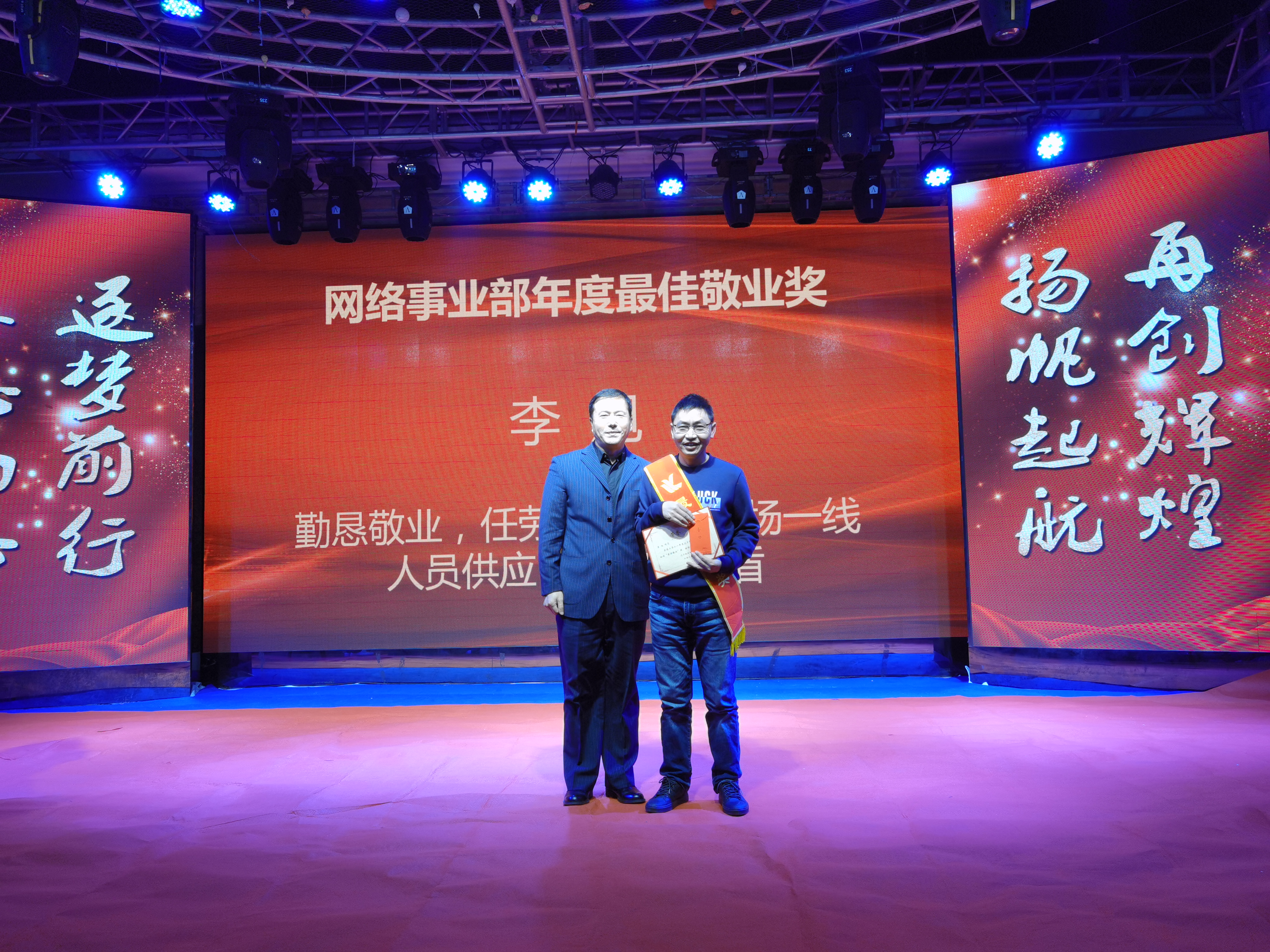 王爾春獲得網(wǎng)絡(luò)事業(yè)部最佳開(kāi)拓獎(jiǎng);張興海獲得網(wǎng)絡(luò)事業(yè)部最佳新人獎(jiǎng);張玉梅、李楠獲得網(wǎng)絡(luò)事業(yè)部最佳團(tuán)隊(duì)凝聚力獎(jiǎng)。公司網(wǎng)絡(luò)事業(yè)部總經(jīng)理趙福寬為獲獎(jiǎng)?wù)?/span>頒獎(jiǎng)。